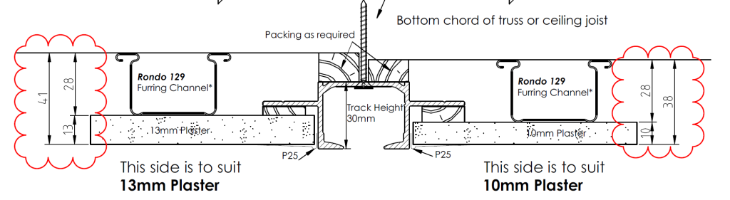 • To ensure enough space, we recommend using a 28mm Rondo 129 Furring Channel.